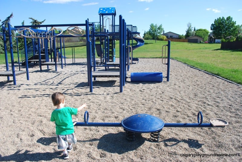 The playground itself has some nice features though and Gordie was really impressed that it was blue and had moons and stars on the canopy. Aside from the swings, Gordie also really enjoyed the spinners and running across the bridge.