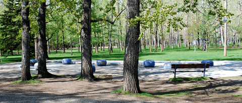 Summer Features: Pathways; Lagoon (popular with ducks and geese, canoes, kayaks and paddlecraft); Boat rentals; miniature ride on train; wading pool, Bow River access.