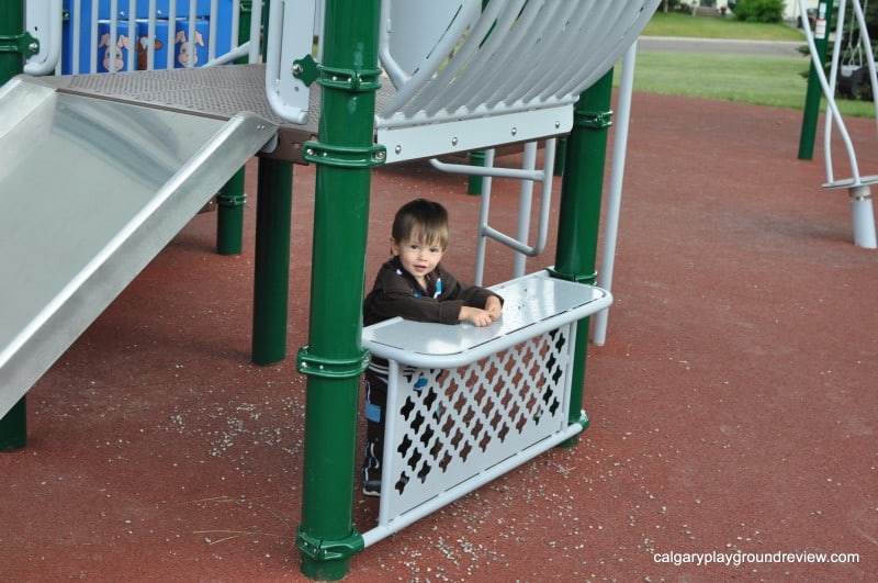 Overall assessment: There’s a lot of variety. It’s a great playground for younger kids – Gordie had a lot of fun. You could have a lot of kids here and not run out of space.
