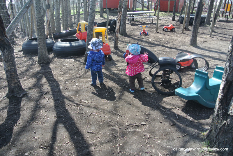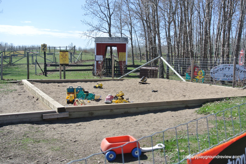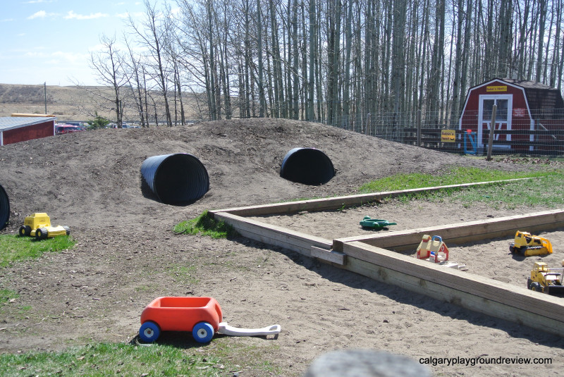 Another play area has a large sandbox with lots of toy construction vehicles and ‘gopher hole’ tunnels.