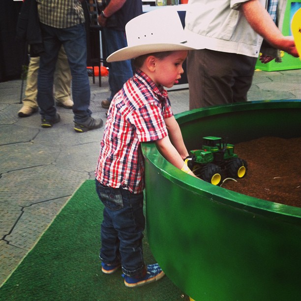 We had taken Gordie to the Stampede 2 years ago, and he played with these tractors. When I asked him what he most wanted to see or do at the Stampede this year, this was it. Who would have guessed? These are in the Agri-tivity building near the Saddledome. They have some animals on display and some different activities for kids too.