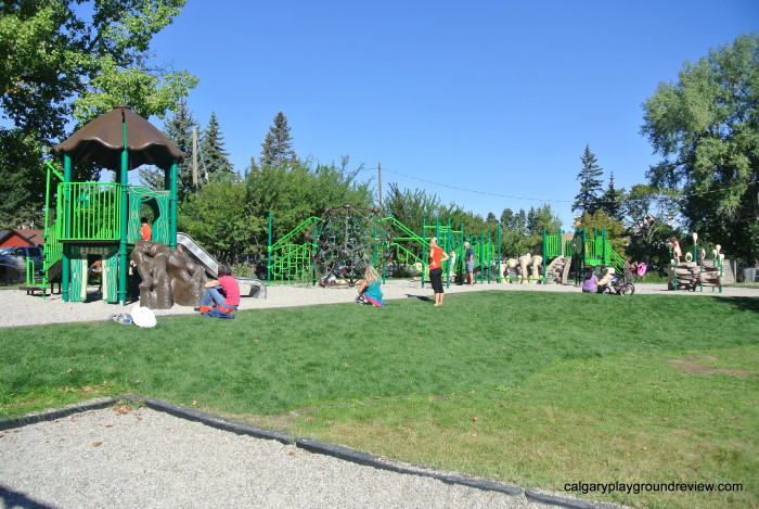 Surrounding Park Area: Playground is located on the grounds of the Capitol Hill Community Association. It is bordered by 14th St on one side and 20th Ave on the other but with fencing and bushes all around you can hardly tell. There is a baseball diamond and lots of grass to run in or kick a ball around. Bushes adjacent to the playground would provide an excellent setting for hide-and-seek or playing “house”.