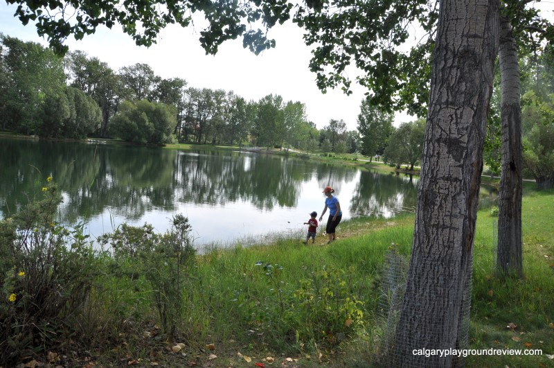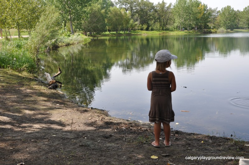 There’s a number of spots where you can get close down by the water to throw rocks or look at the pond life.