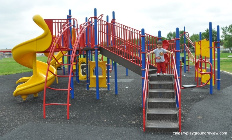 We didn’t stay at this playground too long, between the lack of shade and the mosquitos that day, it wasn’t a great place for baby Nicole, but Gordie had a great time on the slides and bridges.