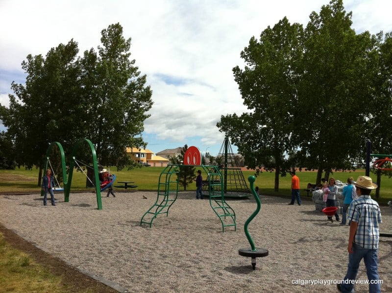 There are no traditional swings at this park, but the saucer swings where several kids can pile on and swing back and forth.