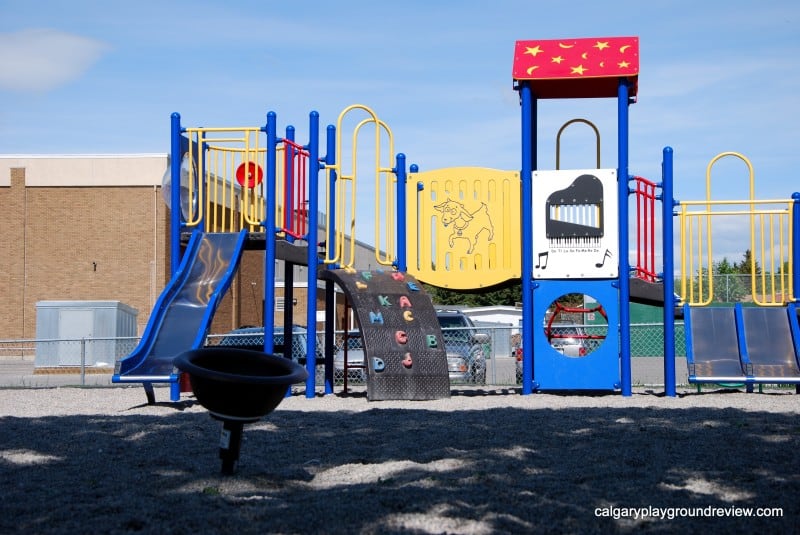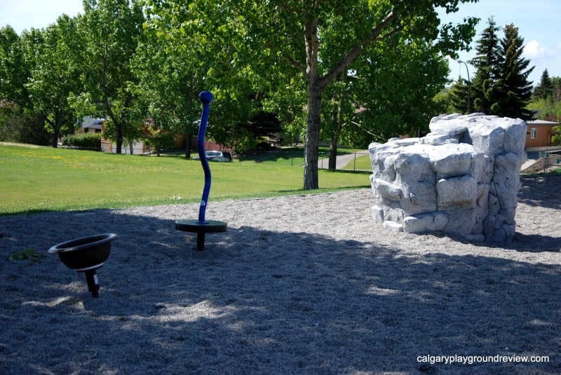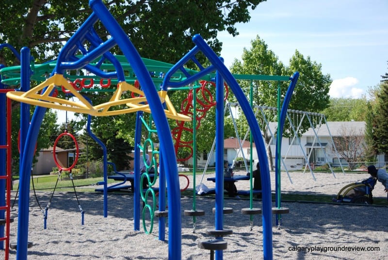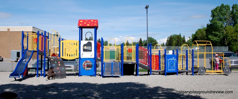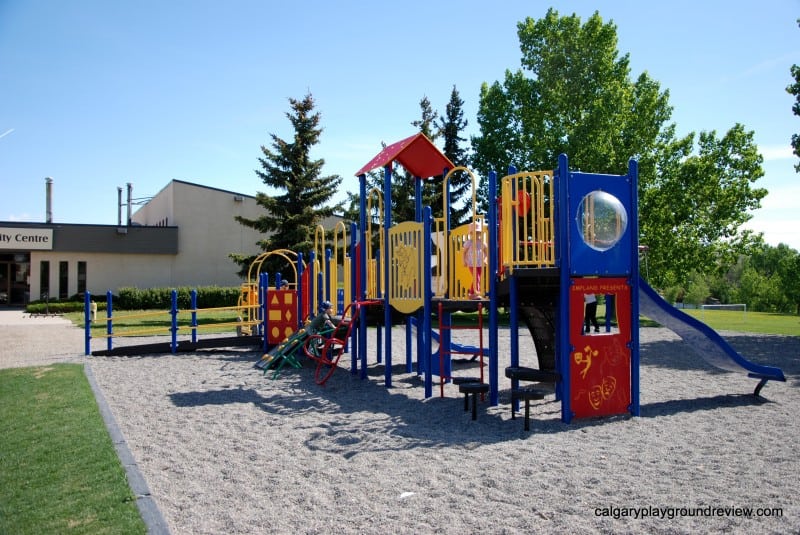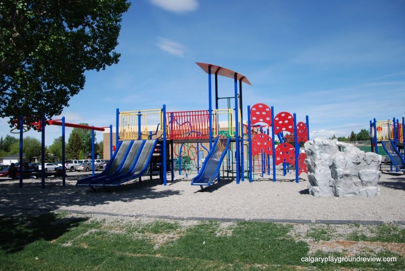 Surrounding Park Area: The playground is right next to the community centre and a Jr. High. There’s a hill on the East side of the playground leading down into large fields that the Jr High uses for sports activities.