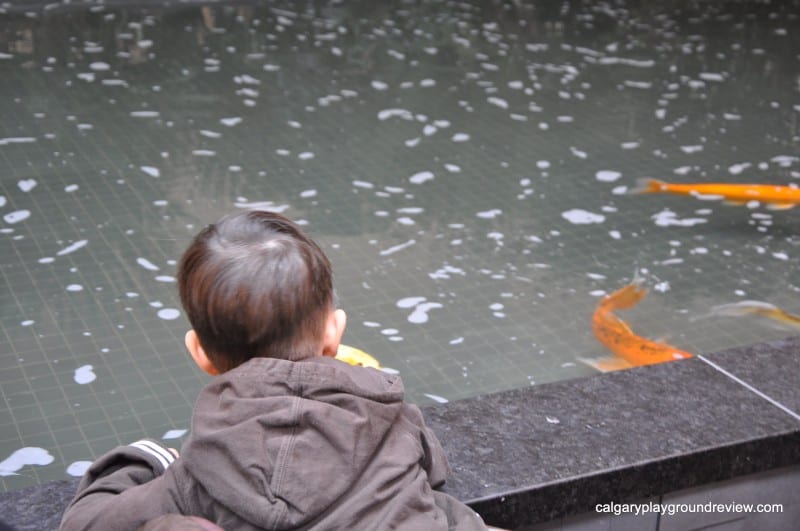 The gardens also have fish to look at and a fountain (as well as the plants!) so it would still be a fun diversion. We were there on a rainy week day morning and the playground was pretty busy, but there was still room for the kids to play and most people were able to find a seat nearby.