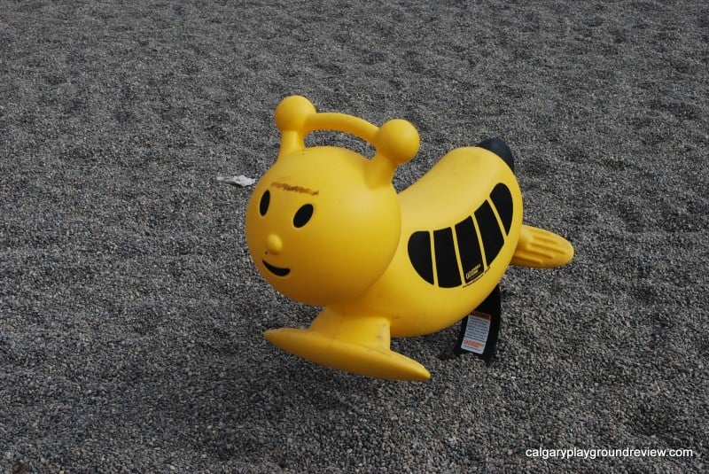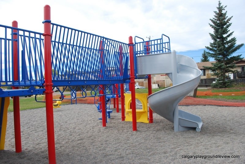 Overall Assessment: This playground was built this year (2010) with help from the Foresters, Kaboom! organization, Parks Foundation Calgary and City of Calgary Parks. This playground is so new the landscaping still isn’t finished. It looks like the new playground will be well used as there was a bunch of kids there in the short time we were there. The playground is not huge and isn’t worth driving too far but is a great addition to the neighborhood.