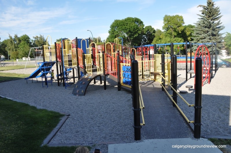 Overall Assessment: School playgrounds with swings are getting less and less common. Due to new safety regulations, they require a big space commitment and separation from the rest of the playground. This playground is an exception through with 6 swings and a solid but unremarkable playground.