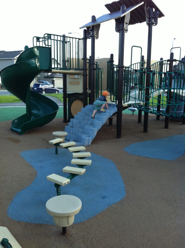 The rubber floor makes it easy for the little ones to be able to crawl around on without eating a mouthful of rocks, and the structures are so accessible that even our two year old can get around with no problem or help from mommy or daddy.