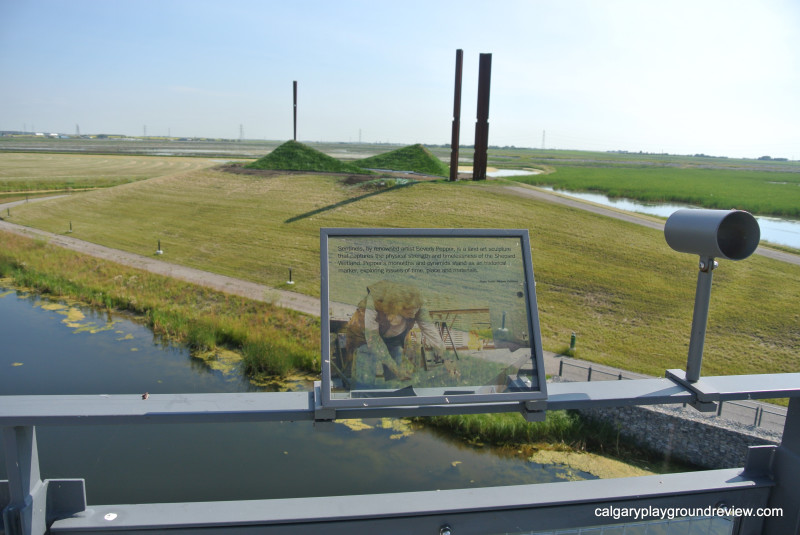 It is home to the Environmental Education and Ethics Centre (indoor classroom, resource library, art studio, interpretive signage, meeting space), Beverly Pepper’s Sentinels art sculpture and a community orchard.
