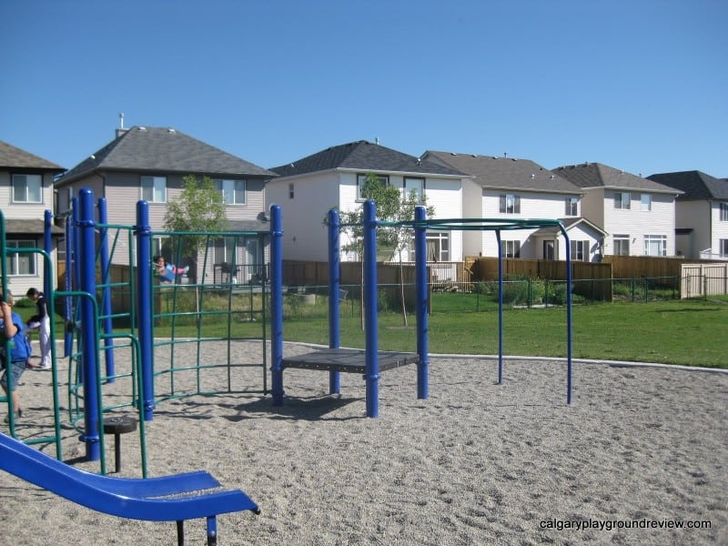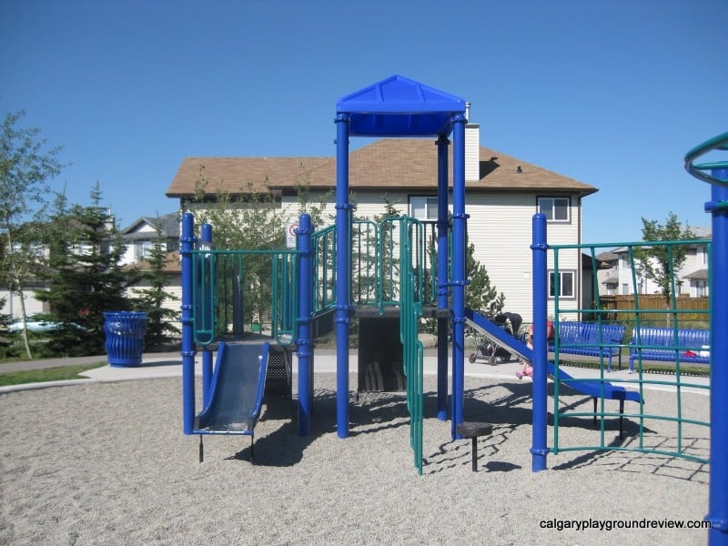 Overall Assessment: This is a nice neighborhood playground. There is some pretty landscaping at the western path entrance. The three year olds we were with really enjoyed the merry-go-round climber and Gordie and the other one year old had fun with the side by side steering wheels.