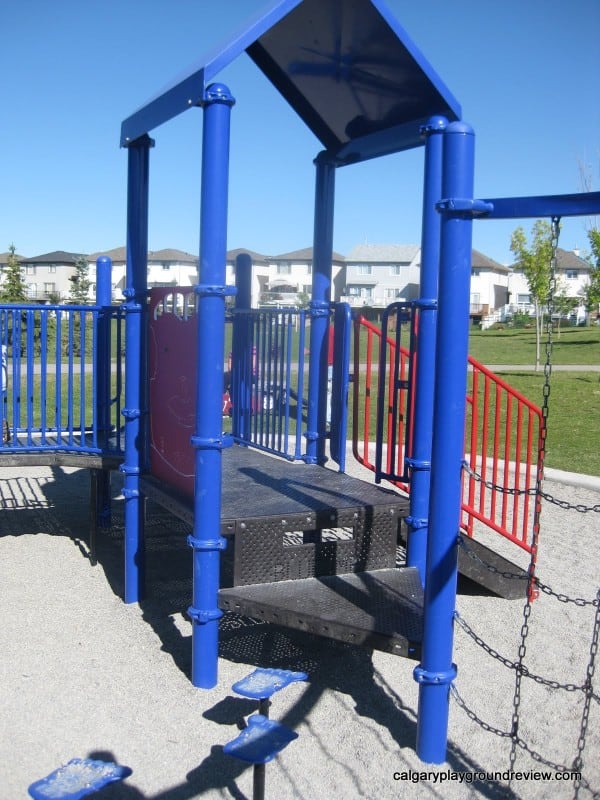 Surrounding Park Area: This playground is nearby the Saddleridge pond/slough. There are some gentle grassy hills, a basketball hoop and a soccer field.
