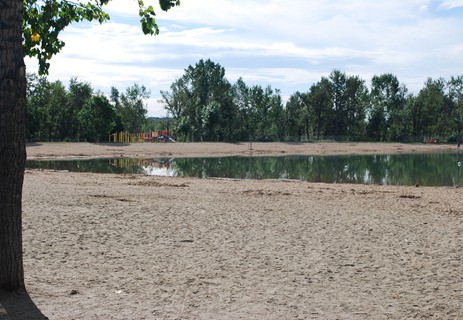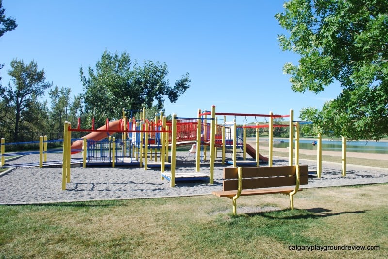 The toddler playground is located on the grassy area near the North parking lot, the school-aged playground is located on the sand on the East side of the lake and the third playground is located on the south side of the lake.
