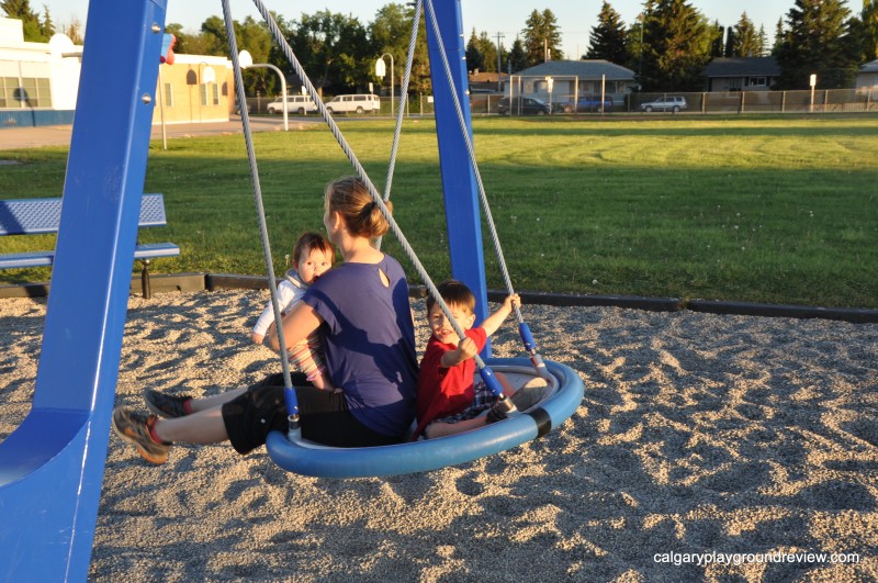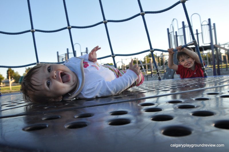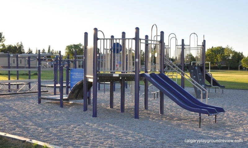 Overall Assessment: This playground is great for kids who love slides, likes to swing or spin as well as school aged kids who are looking for a challenge. One of the best things about this playground, however, is that it is only a short walk across the park from two other playgrounds. Three playgrounds in one easy stop, what could be better than that?