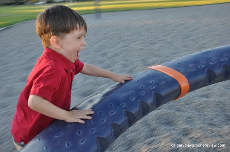 Gordie’s Review (3.5 years old) – “what did you think of this playground?” “I liked pushing mommy and  (baby) Nicky on the spinner”