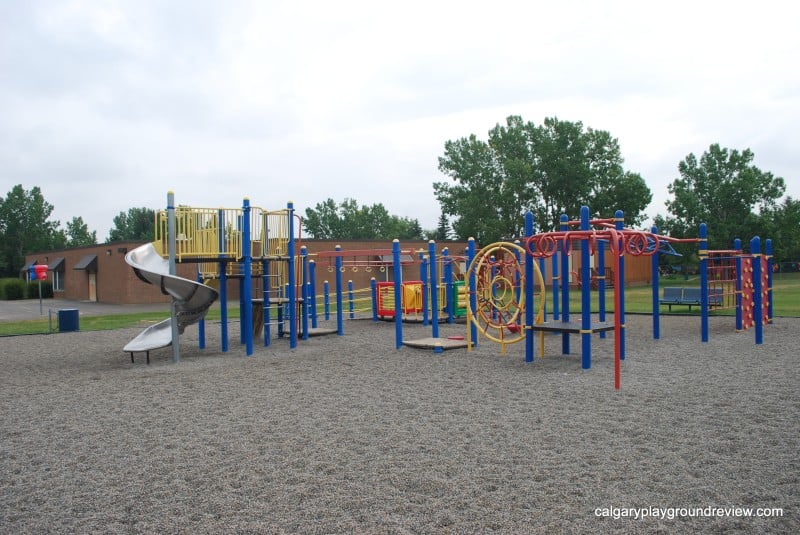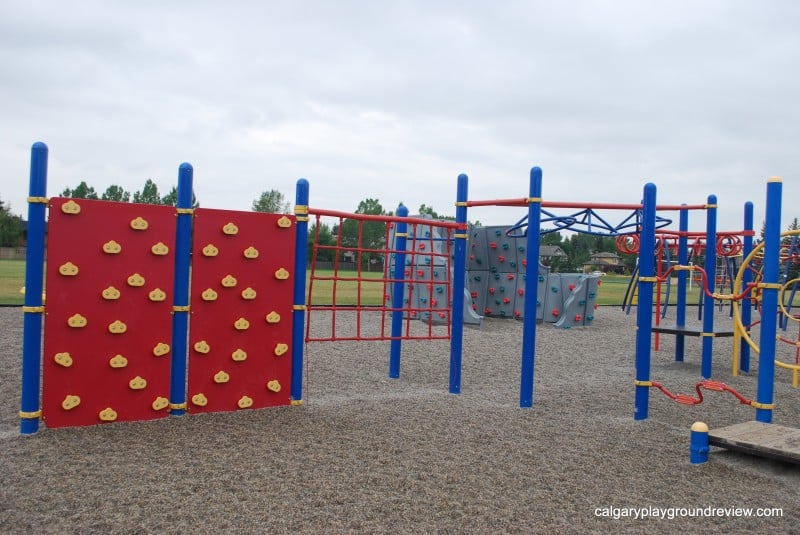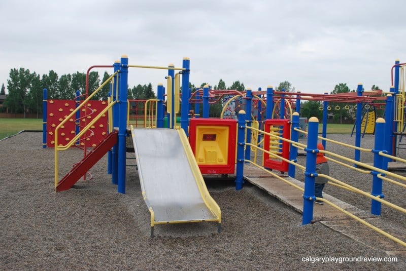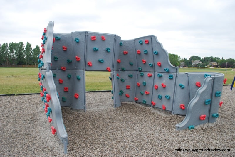 Overall assessment: It looks like some newer equipment has been added to the old playground here. The older pieces could use a little paint but is otherwise in good shape and retains a lot of play value. The large climbing wall in one of the most impressive ones I’ve seen. T