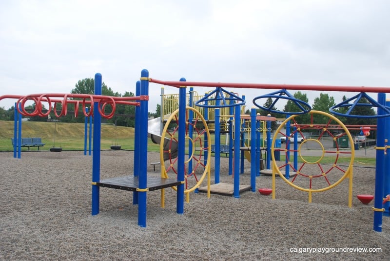 he newer monkey bar area could keep kids busy for a long time trying to keep their feet off the ground as they go around. Although this playground is generally geared towards school-aged kids the preschool climber makes this a place you could take a wide range of kids. Gordie enjoyed the older equipment the most, but it’s generally less advanced than the new stuff.