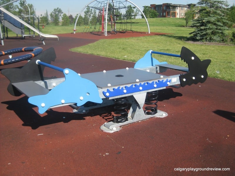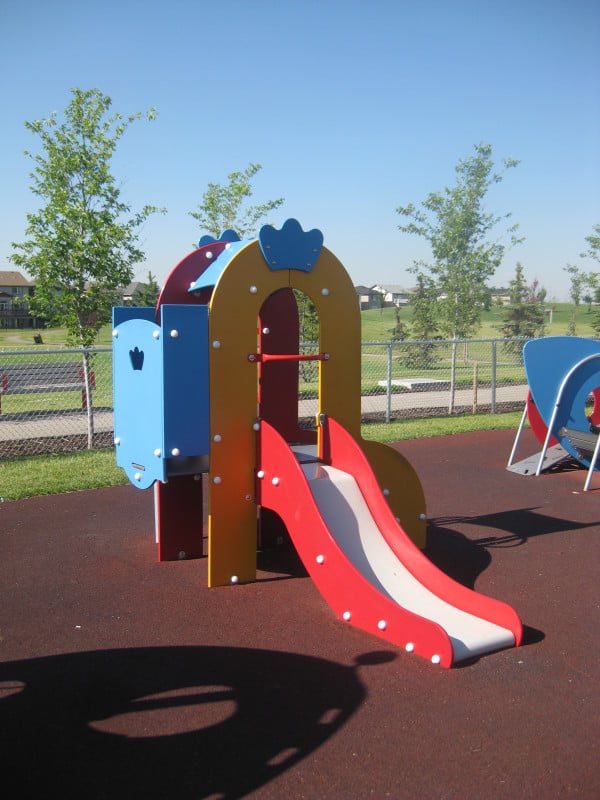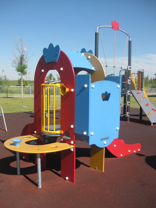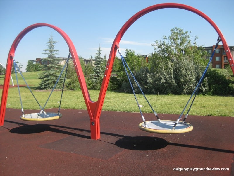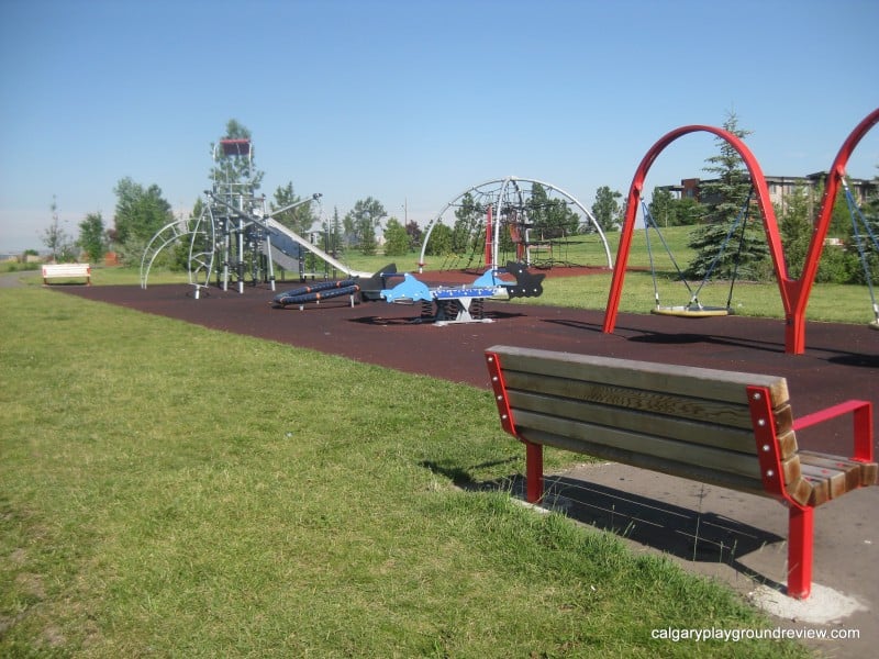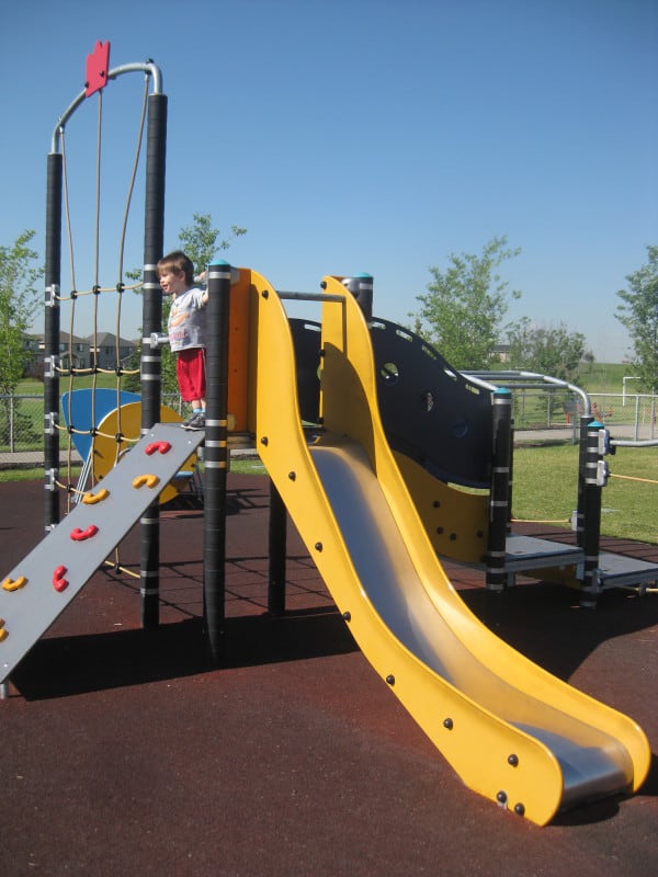 Overall assessment: This playground is really geared towards older kids – I suspect even teenagers could have a good time here. There should be a lot of opportunities for challenging play for all ages. The equipment is excellent and not found in a lot of playgrounds in Calgary. This playground is up the hill from the spray park area, so if you had older kids that didn’t need direct supervision, but you still wanted to be able to see where they were, this would be perfect.