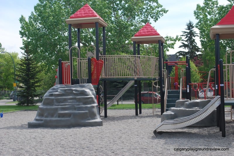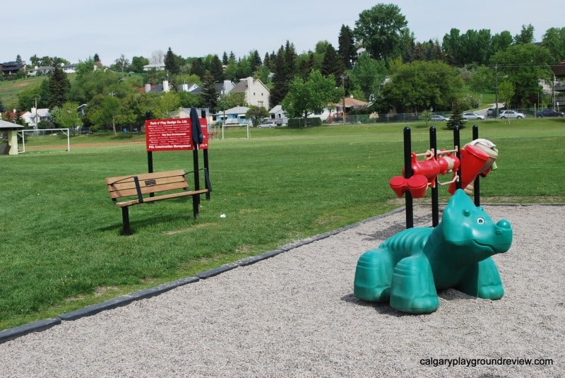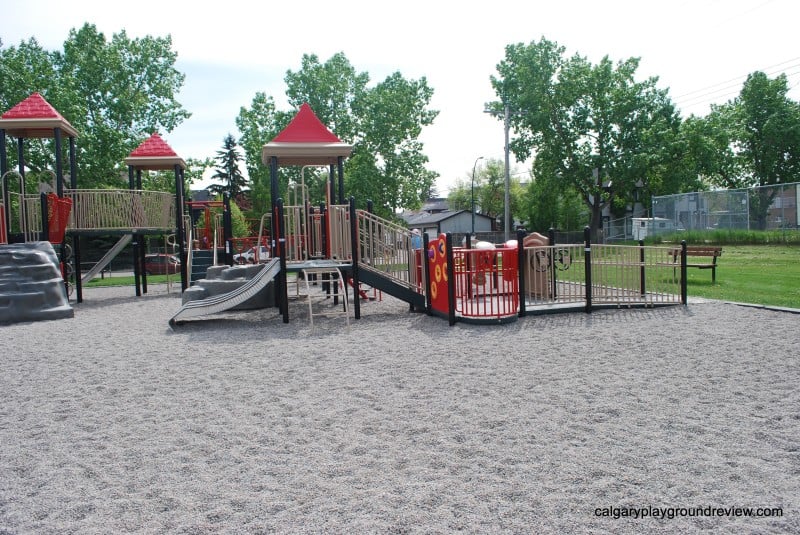 Surrounding Park Area: This playground is next to the West Hillhurst Community Association as well as the Bowview Outdoor Pool (opens mid June). There is a soccer field and baseball diamonds to the north of the playground.