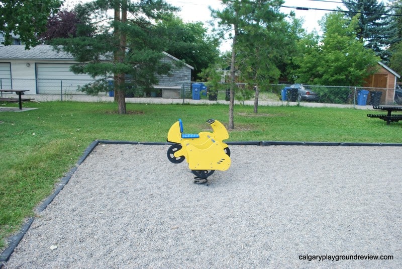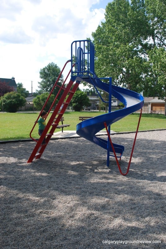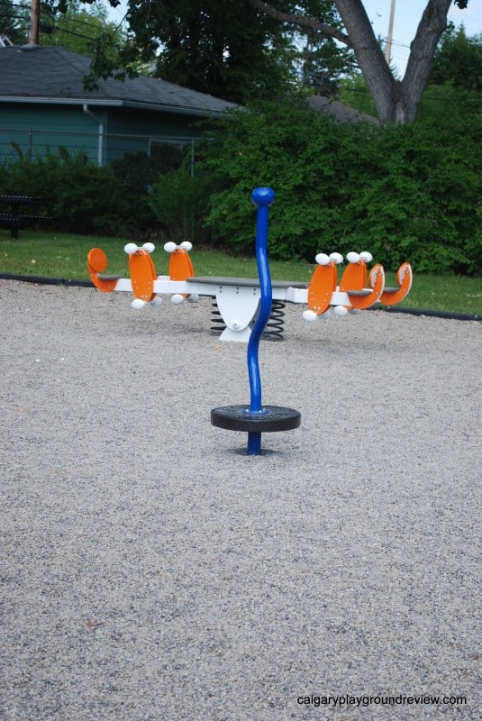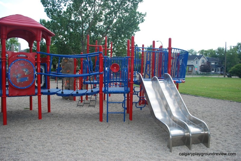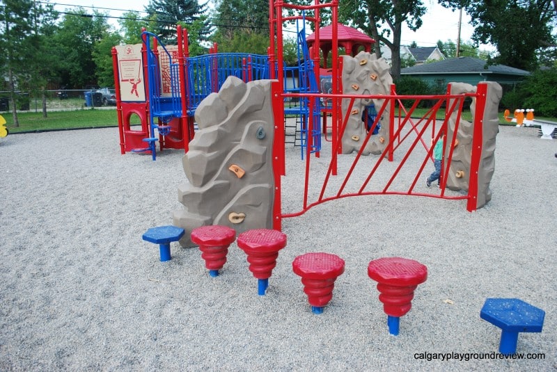 Overall assessment: This playground isn’t huge but it has some really nice features. I particularly like the bridges on the climber. There are 3 different types and there is a bend in the middle. Gordie loves running back and forth (and around the bend). This playground would definitely be worth a short trip.