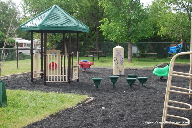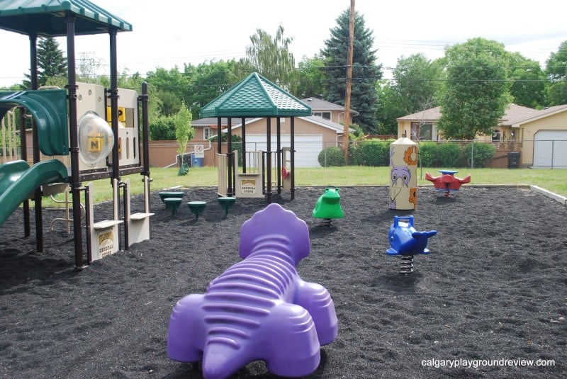 Overall assessment: This is an excellent playground to let preschoolers and toddlers play independently in a safe environment. Gordie had a great time hopping on the bouncers all by himself and running across the bridge. This would be a great place to take a short drive to with your toddler or preschoolers for a change of pace from your neighbourhood playground.